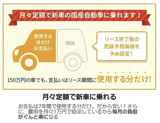 月々11,000円からの支払いで、新車の軽自動車に乗れる7年間のリースプランです。