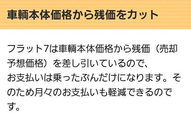 ・フラット7とは、新車に月々1万円台から乗れるマイカーリースです。