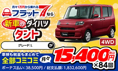 当店がおすすめする格安カーリースブランド「フラット7」は頭金0円・月々定額1.1万円(税込)から新車に乗れる格安マイカーリースです。