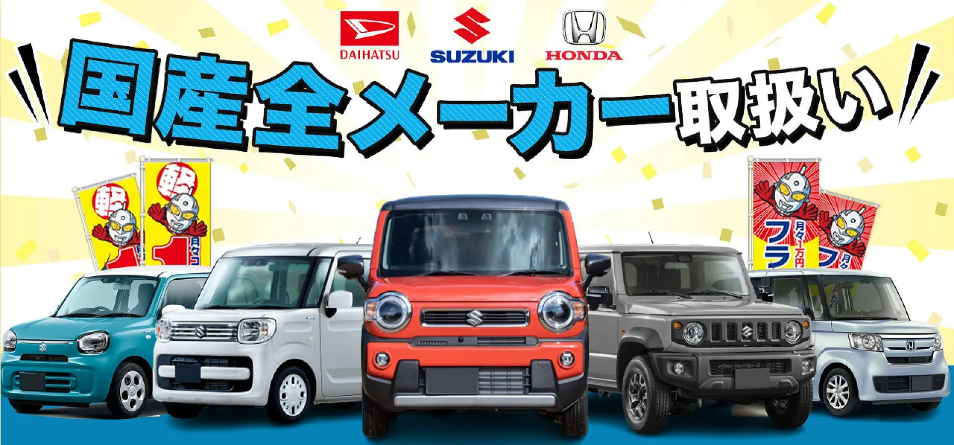 との質問がよくありますが、当店がおすすめするフラット7のマイカーリースは国産全メーカー・全車種・全グレードの軽自動車・普通車・商用車から好きなものを選べます。