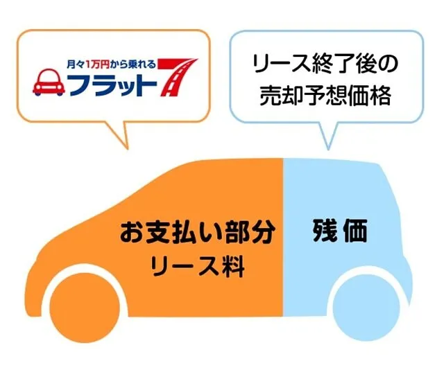 フラット7は車輌本体価格から残価(売却予想価格)を差し引いているので、お支払いは乗ったぶんだけになります。そのため月々のお支払いも軽減できるのです