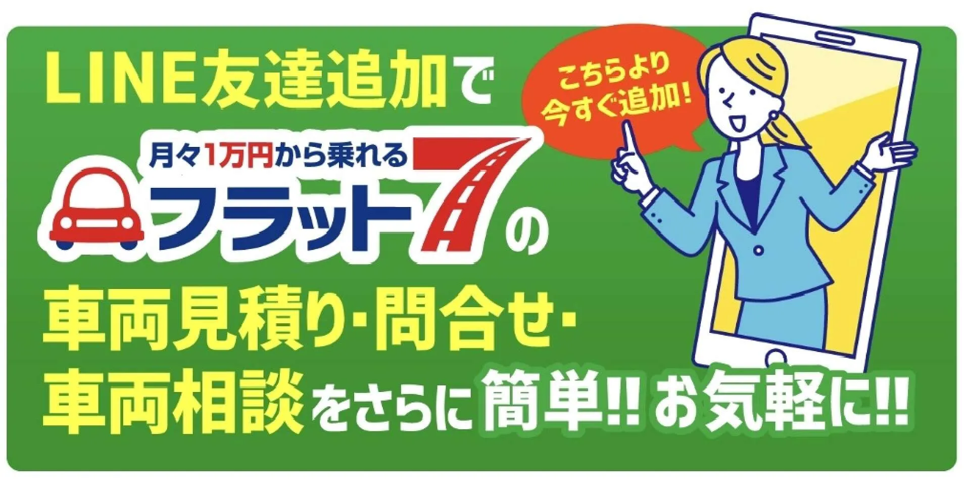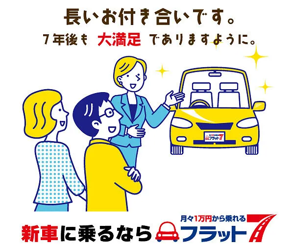 「〇〇の車、ディーラーで見てみたいんだけど…」という一言からでOKです。 お客様の理想の1台を、最強のコスパ(フラット7)と最強の安心(ディーラー連携)で実現します。