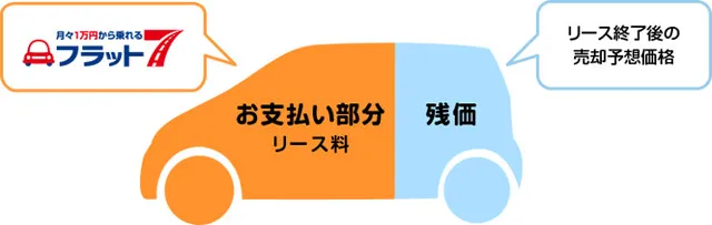 フラット7は車輌本体価格から残価(売却予想価格)を差し引いているので、お支払いは乗ったぶんだけになります。