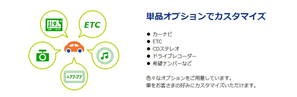 ドライブレコーダーやETCも自由に選択できます。