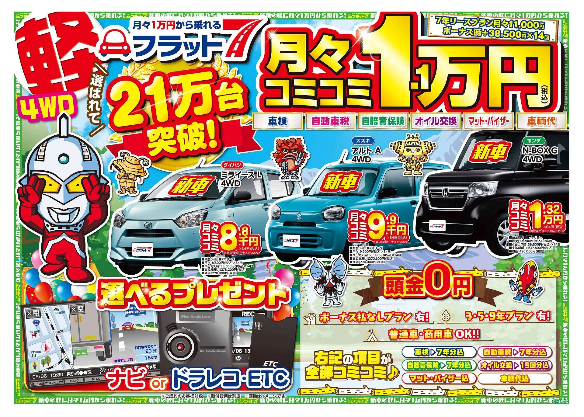 フラット7新車カーリース 選べるプレゼント企画 福井県大野市