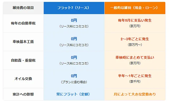 つまり、フラット7は**「車にかかる費用を平準化する仕組み」**。